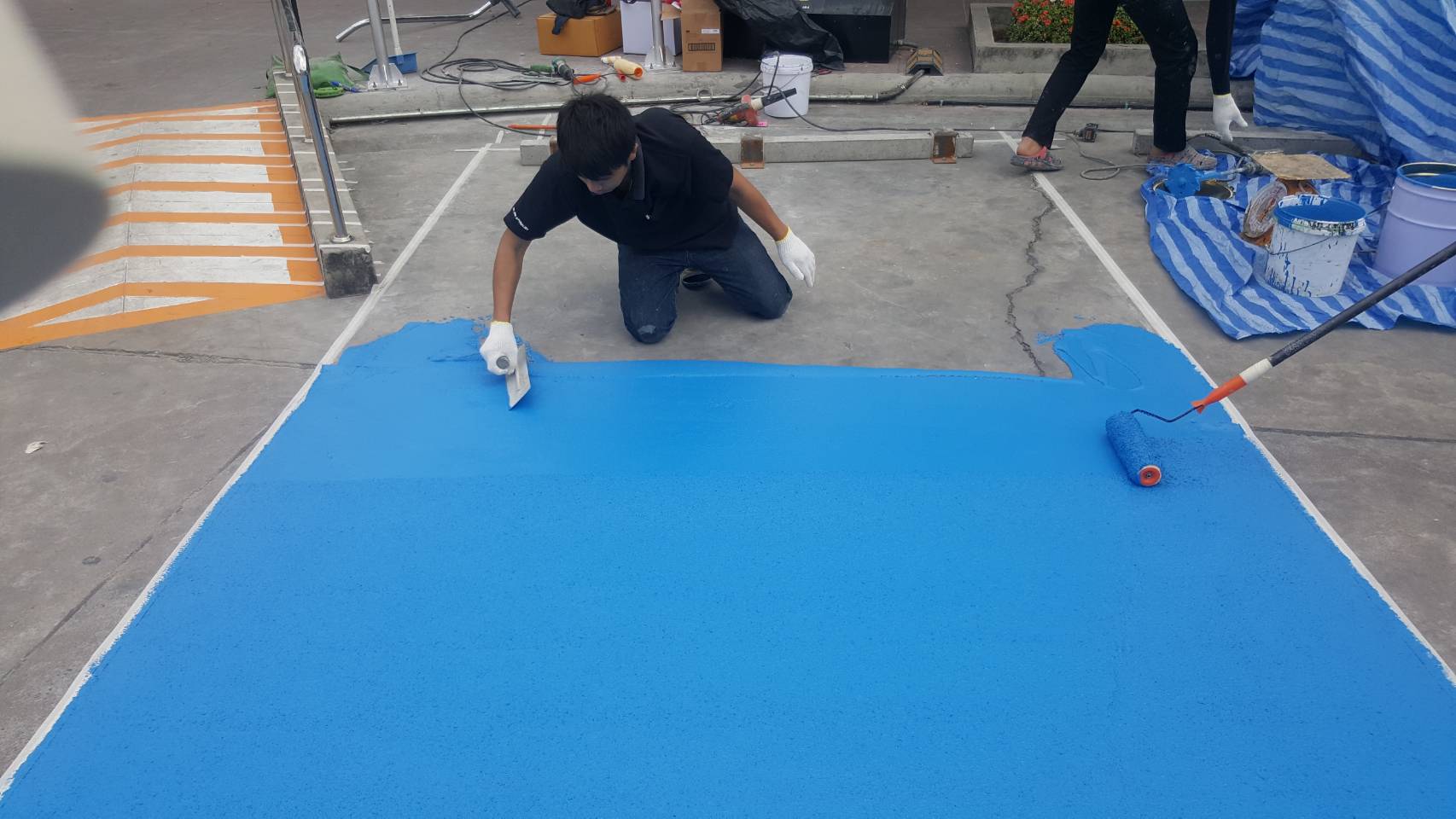 - ยึดเกาะได้ทั้งพื้นผิวคอนกรีต และยางมะตอย   -  ความทนทานต่อการขัดสูง
